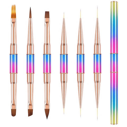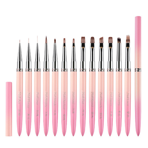 גרדיאנט יחיד ורוד ידית מתכת ציור מברשת שיער ניילון מניקור עיצוב diy ציפורניים תחרה שטוח ציור עט פרח פרח ציור