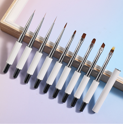 חדש מתכת לבן יחיד ידית מניקור אמנות מברשת שיער ניילון מסמר אמנות ציור עט טיפול אור ציור מסמר אמנות מברשת