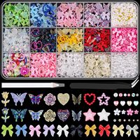 15 רשתות/תיבת סרט צבעוני פרפר ציפורן פרפר אמנות קמעות שרף פנינה כוכב לב אמנות אבני חן ציפורניים אבזור