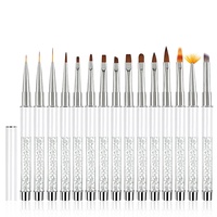 סט מברשות לציפורניים עם ידית בצבעי לבן, שחור וזהב-ורוד, שיער ניילון, אלומיניום ונחושת, לצביעת ציפורניים, ג'ל UV ולקישוט ציפורניים.