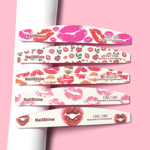 New Biểu Tượng Tùy Chỉnh Nửa Trăng Móng Tay Tập Tin 100/180 Có Thể Giặt Khử Trùng Móng Tay Tập Tin In Với Môi Mô Hình Bền Màu Hồng Móng Tay Tập Tin