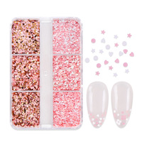 6 Grade/caixa Estrela Coração Redonda Nail Art Glitter Rosa Branco Pequeno Nail Art Sequins Decoração DIY Cute Nail Acessórios