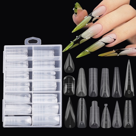 Nuovo 140 pz/scatola in plastica a doppia forma con Stiletto quadrato dritto per unghie punte per unghie in Gel Extension stampo per unghie trasparente