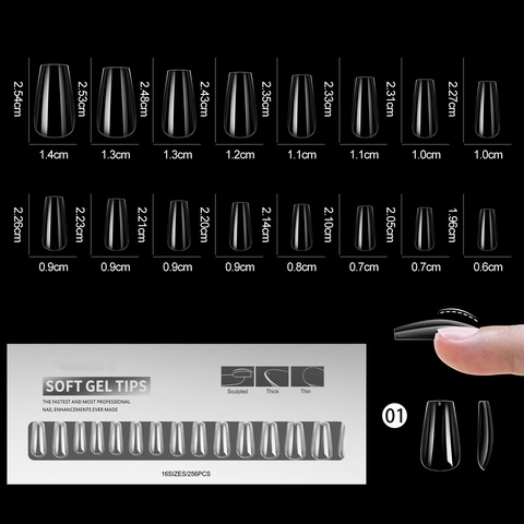 Nuove punte per unghie in Gel morbido pz/scatola 16 taglie 256 senza traccia con copertura totale curva a C punte per unghie in acrilico punte per unghie Ultra sottili