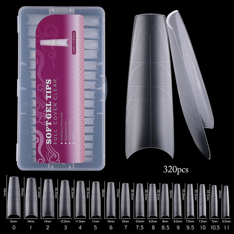 300/320 pz/scatola punte in Gel morbido lungo con copertura completa trasparente Ultra-sottile Non traccia punte per unghie punte di estensione per unghie
