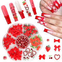7 Grids/box Red Morango Mix Cereja Arco Pérola Nail Art Rhinestone Resina Cristal Diamante Encantos 3D Nail Jewelry Acessórios