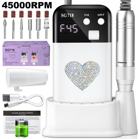 Yeni SG718 45000RPM şarj edilebilir akülü Nail parlatıcı öğütücü USB taşınabilir beyaz pembe manikür E dosya tırnak matkap makinesi