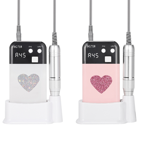 Yeni taşınabilir SG718 beyaz pembe 48W şarj edilebilir tırnak matkap masaüstü USB 45000RPM kalp şekli E dosya tırnak matkap makinesi
