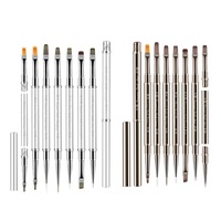 7 pcs/सेट डबल हेड धातु हैंडल नाखून ब्रश बहु-कार्यात्मक फ्रेंच लाइट फोटोथेरेपी जो नायलॉन बाल नाखून कला पेन ब्रश